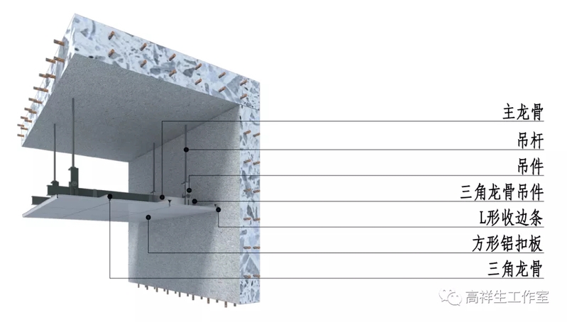 图 13-3-7 明架方形铝扣板顶棚构造节点图